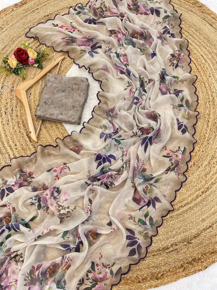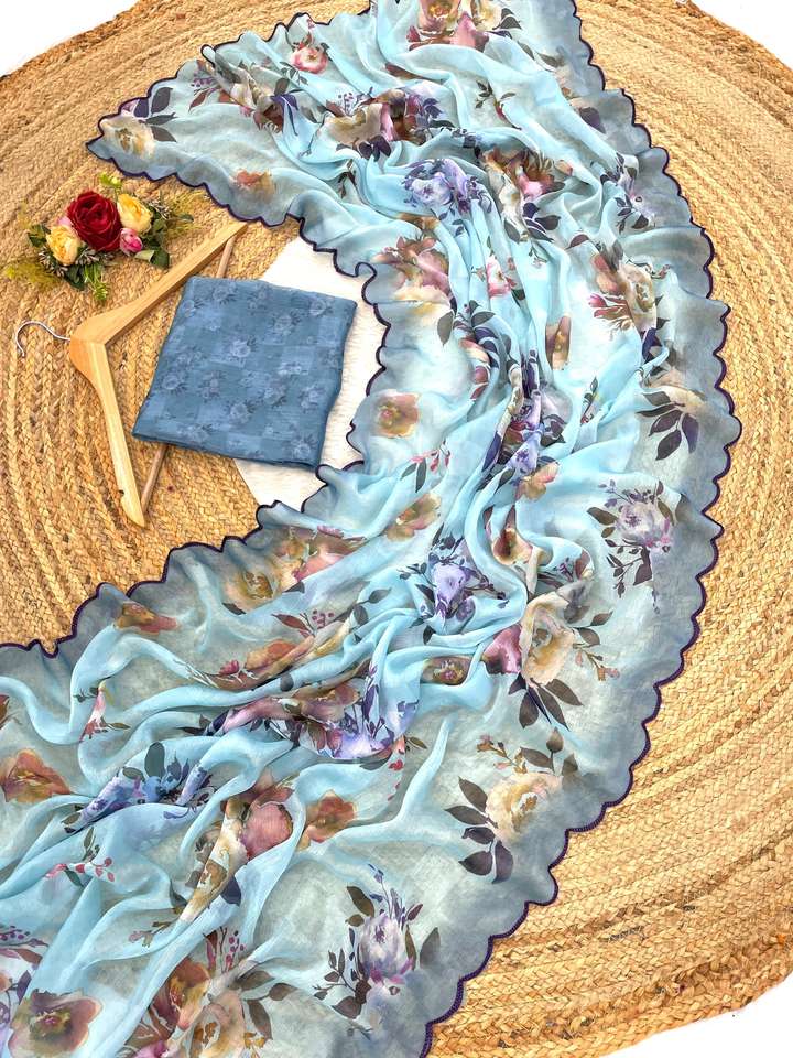 Designer Pakistani Chiffon Sari Digital Printed Silk Saree with Beautiful Border for Weddings and Parties