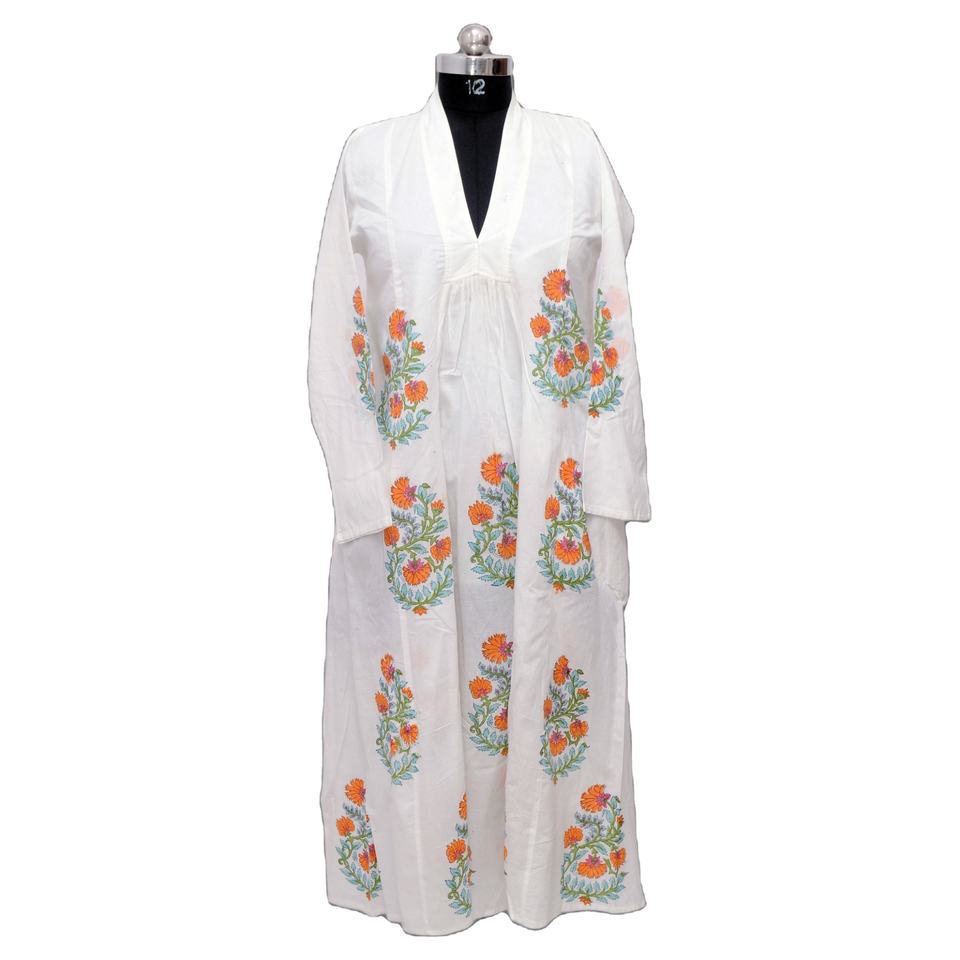 เสื้อคลุมยาวทรงหลวม คอวี แขนยาว ผ้าฝ้ายอินเดีย ลายพิมพ์ดิจิทัล ลายดอกไม้ เอวธรรมชาติ สำหรับผู้หญิง