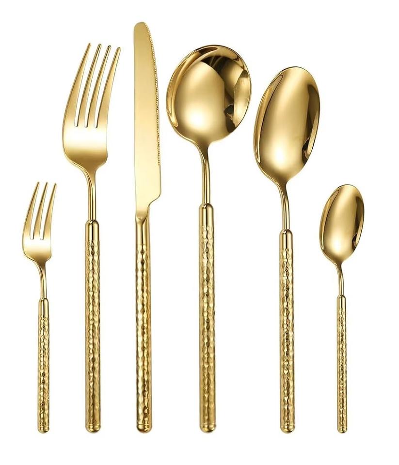 ชุดช้อนส้อมสแตนเลสดีไซน์เนอร์ รักษ์โลก ทนทาน สวยงาม เหมาะสำหรับงานเลี้ยง ผลิตด้วยมือโดยช่างฝีมือชาวอินเดีย
