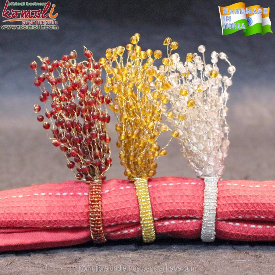 แหวนผ้าเช็ดปากลูกปัดทำด้วยมือแบบกำหนดเอง