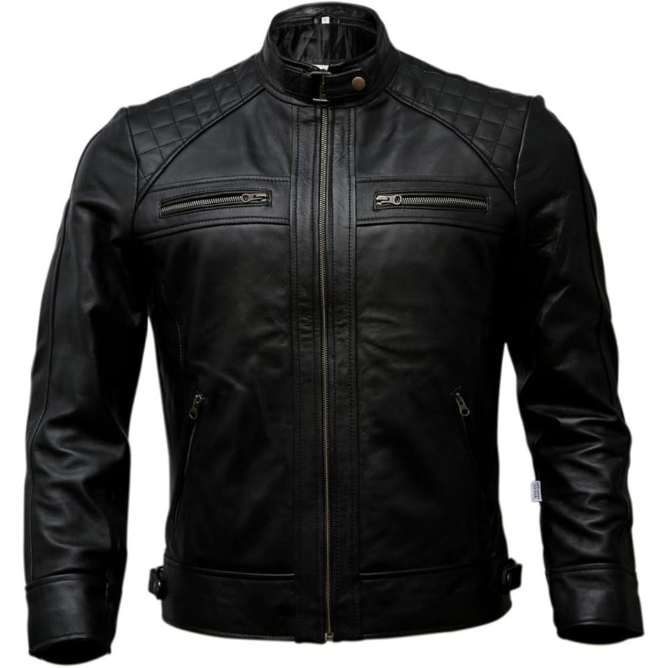 แจ็กเก็ตนักขี่จักรยานหนังแกะดีไซเนอร์สำหรับผู้ชายผลิตจากวัสดุที่สวมใส่สบายและทนทาน