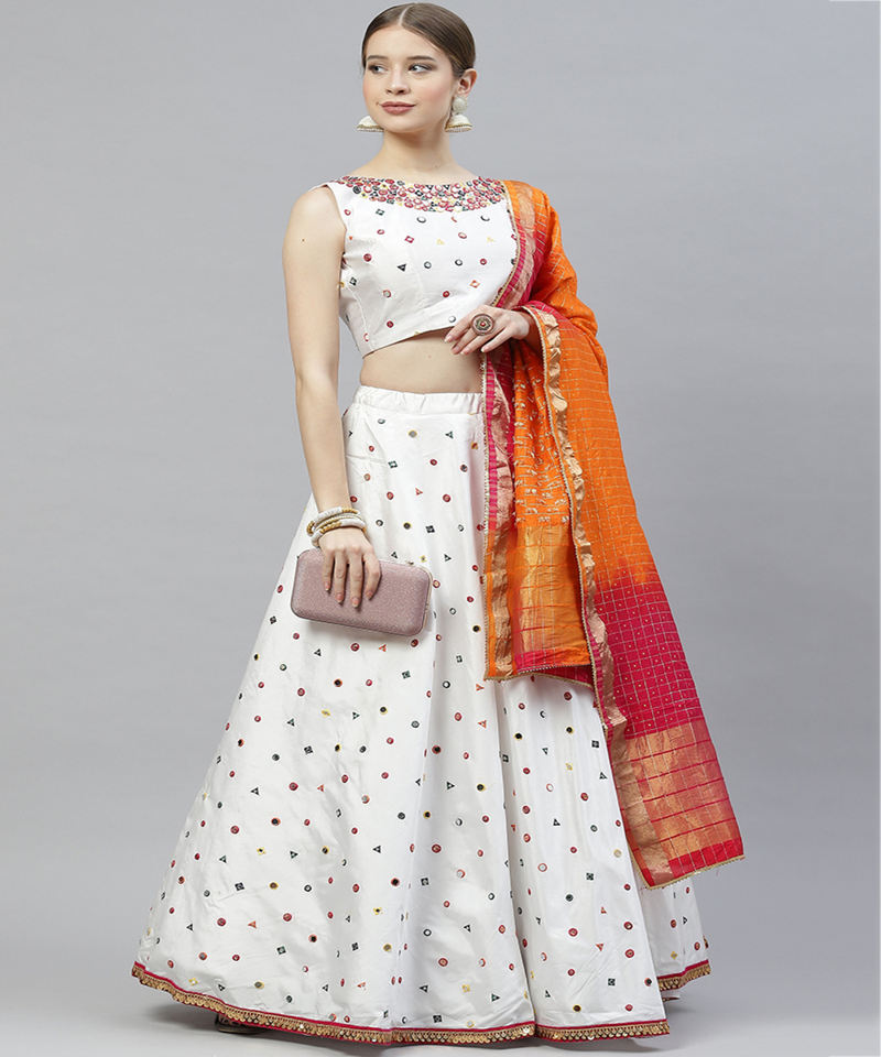 ชุดเลเฮนกา โจลี ดูปัตตา ผ้าไหมปักลายฉลุประดับเลื่อม งานออกแบบสำหรับผู้หญิงอินเดีย ชุดแต่งงาน ชุดพื้นเมือง อัลฟานูเมโร
