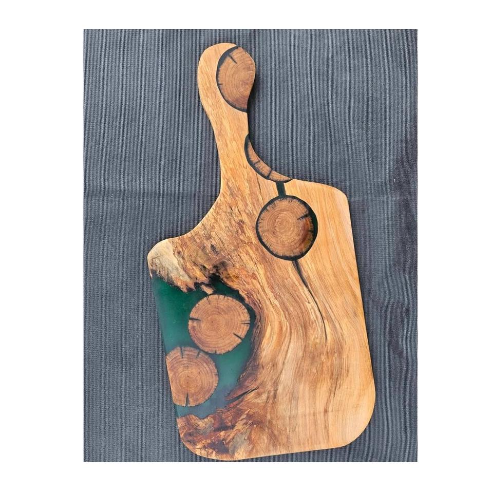 เขียงเรซินดีไซน์เนอร์ที่มีพื้นผิวอีพ็อกซี่เรียบและมีรายละเอียดไม้ที่สมบูรณ์แบบสำหรับการเสิร์ฟอาหารและศิลปะที่บ้าน