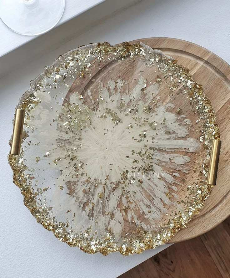 ถาดเสิร์ฟเรซินดีไซน์เนอร์สำหรับบ้านหรูที่มีลวดลายทำมือและสีอ่อนผสมเพื่อความสง่างาม