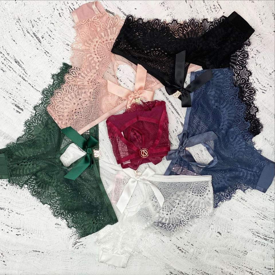 ชุดชั้นในเซ็กซี่ดีไซน์ใหม่ แต่งลูกไม้ปักลายฉลุ พร้อมห่วงรูปตัววีประดับโบว์ กางเกงในจีสตริงสำหรับผู้หญิง ผ้าถักไร้รอยต่อ ระบายอากาศได้ดี