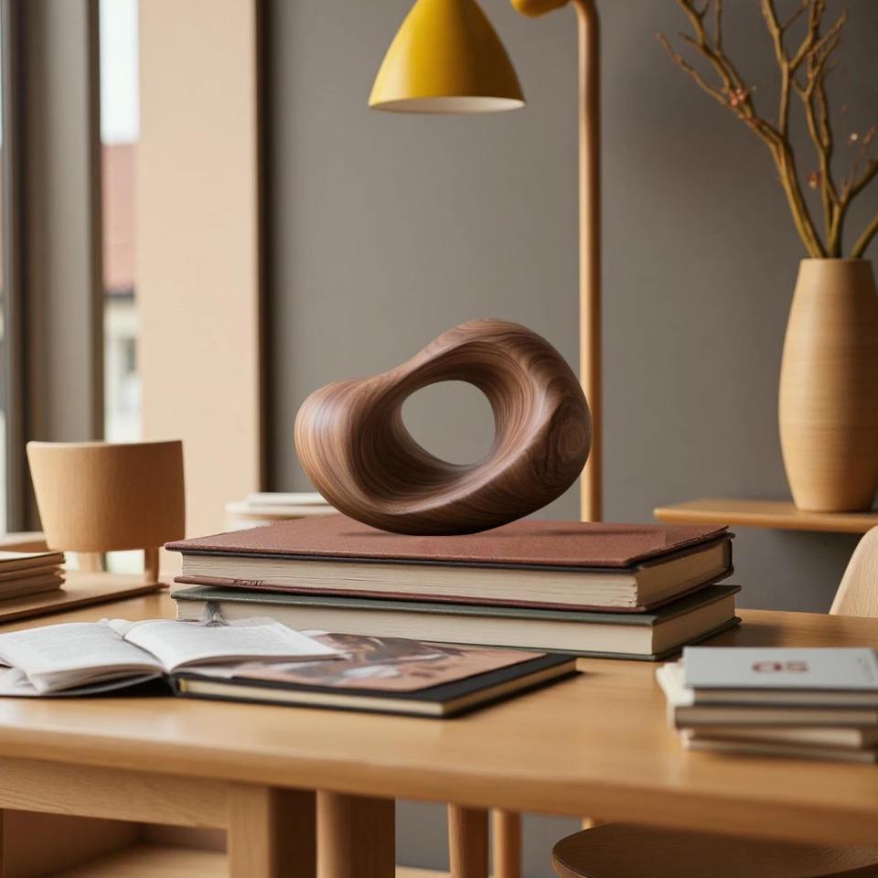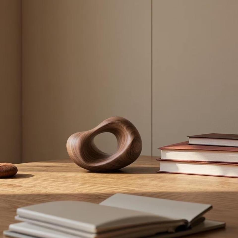 Designer wooden showpiece solid wood figurine natural wood finish premium wooden craft luxury interior accessory modern console