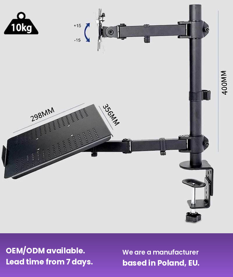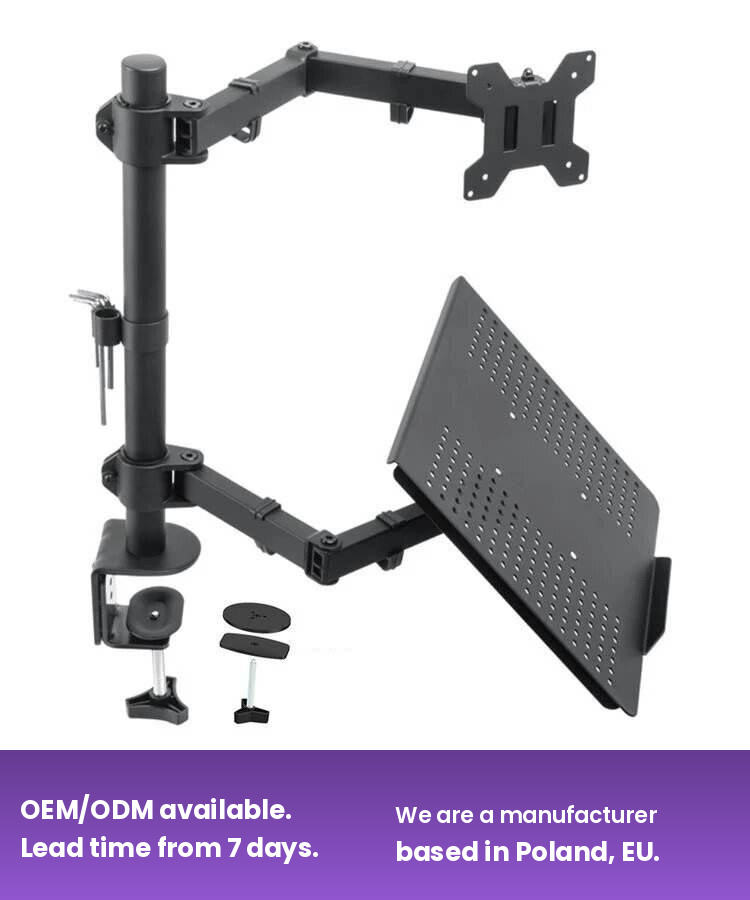 Desk Dual Long Arm Stand Adjustable Metal VESA Laptop And Monitor Stand Computer Bracket Mount Holder