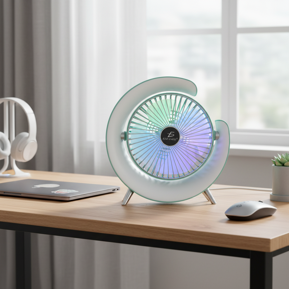 ELEGATE พัดลมตั้งโต๊ะพร้อมไฟ RGB LED 3 ระดับความเร็ว 180 องศา รุ่น B3678 สีเขียว