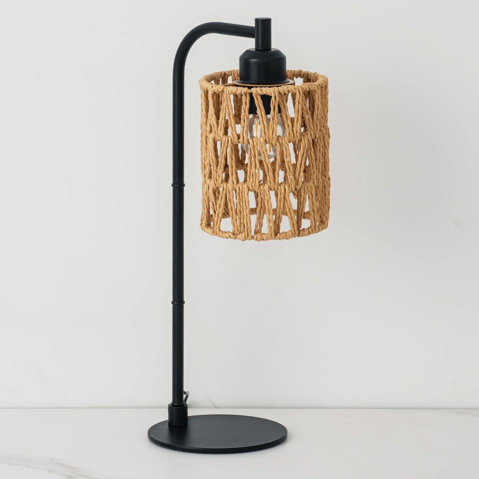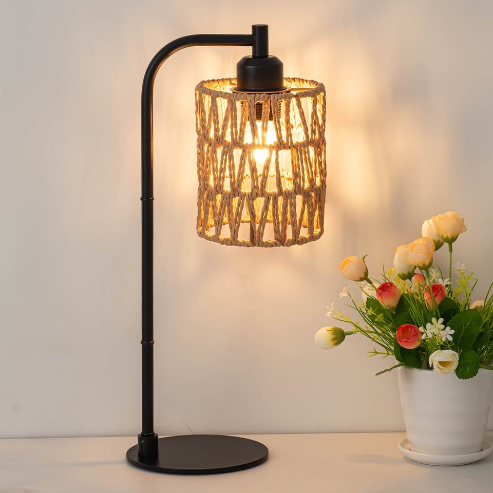 โคมไฟตั้งโต๊ะหวายสีดำตกแต่งพร้อมสวิตช์สัมผัส USB ควบคุมได้สามสี โคมไฟตั้งโต๊ะ LED โมเดิร์น