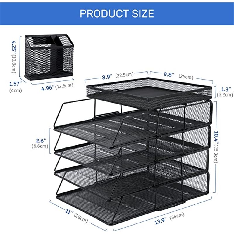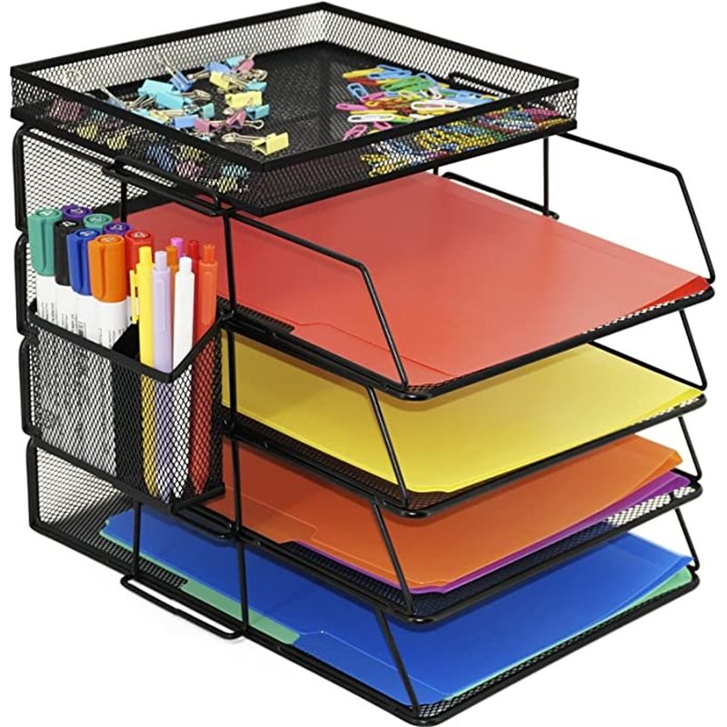 ที่จัดระเบียบเอกสารบนโต๊ะทำงาน ถาดใส่กระดาษ 4 ชั้น พร้อมลิ้นชักเก็บอุปกรณ์สำนักงาน และที่ใส่ปากกา