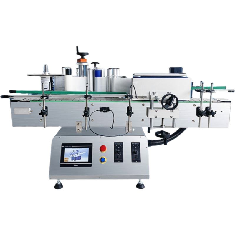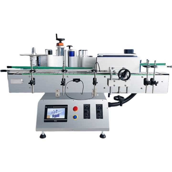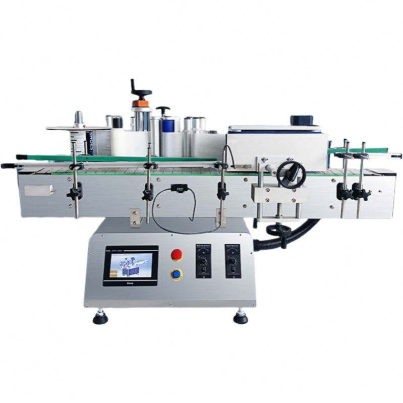 เครื่องติดฉลากอัตโนมัติสำหรับขวดนมผงแบบพ่นกันแดดแบบตั้งโต๊ะ ขวดเครื่องดื่ม ขวดน้ำ
