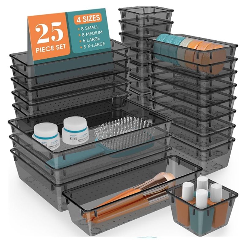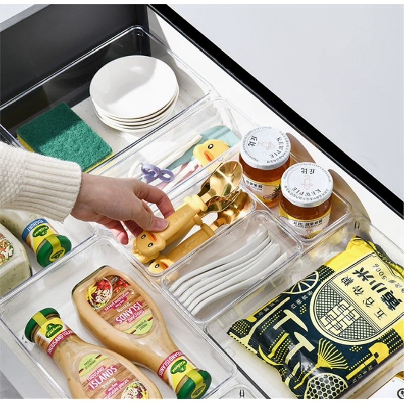 กล่องจัดระเบียบลิ้นชักโต๊ะทำงาน กล่องเก็บเครื่องเขียน กล่องจัดระเบียบเครื่องสำอาง กล่องใสพร้อมช่องแบ่ง