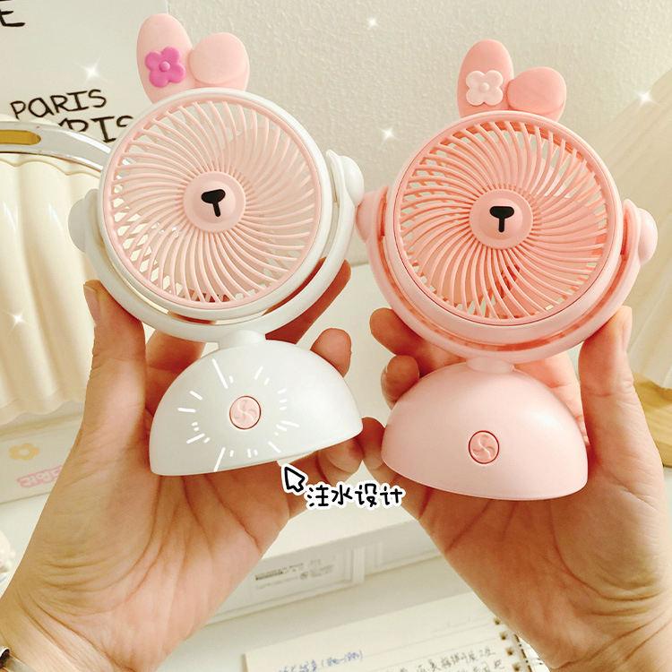 พัดลมระบายความร้อนแบบพกพาขนาดเล็กลายกระต่ายการ์ตูนพัดลมมือถือ USB น้ำหนักเบาสำหรับเด็กผู้หญิงใช้ในครัวเรือนและกลางแจ้ง