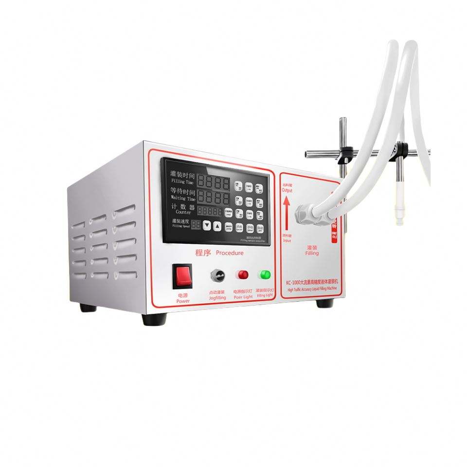 เครื่องบรรจุของเหลวแบบกึ่งอัตโนมัติขนาดเล็กสำหรับขวดพลาสติก ใช้ปั๊มแม่เหล็ก เหมาะสำหรับเจล น้ำ น้ำผลไม้ น้ำผึ้ง น้ำมัน กาแฟ