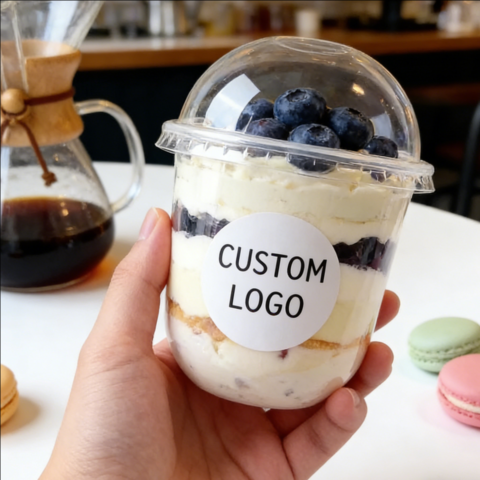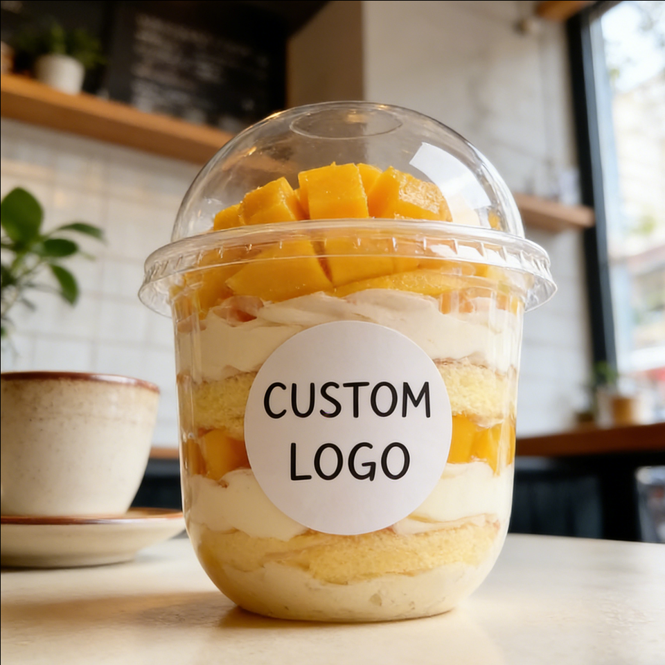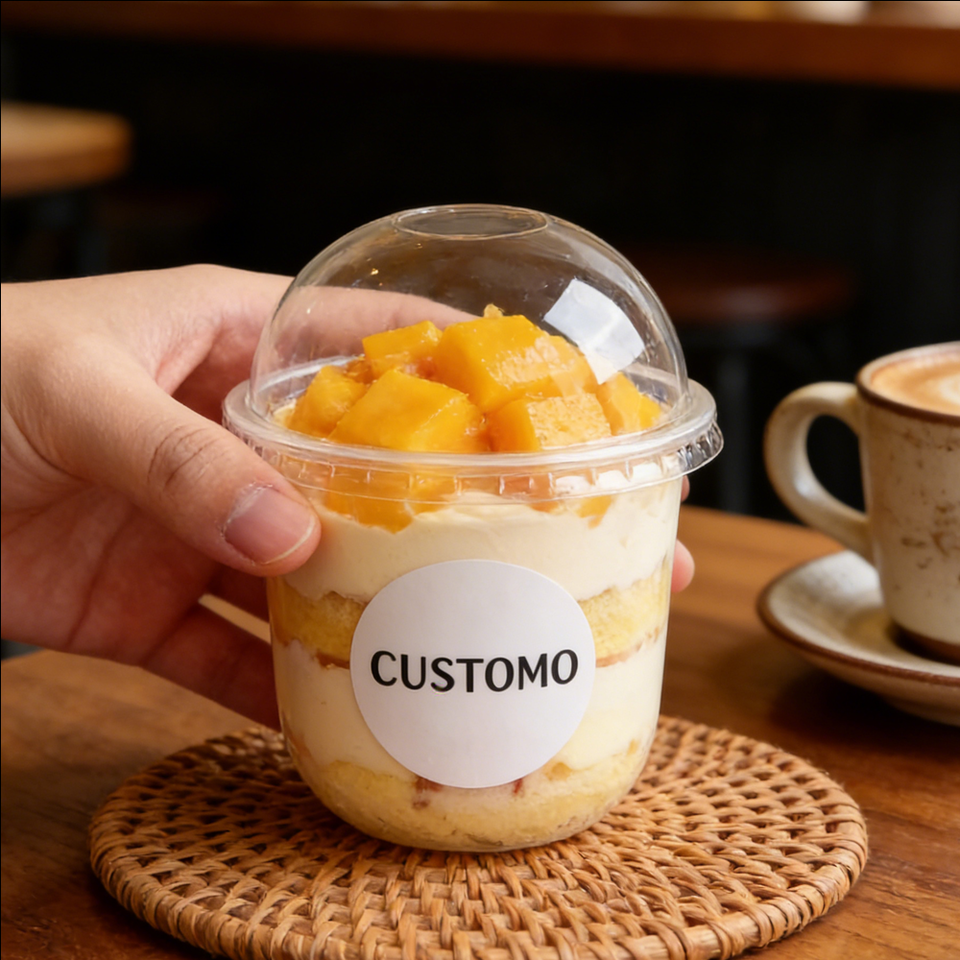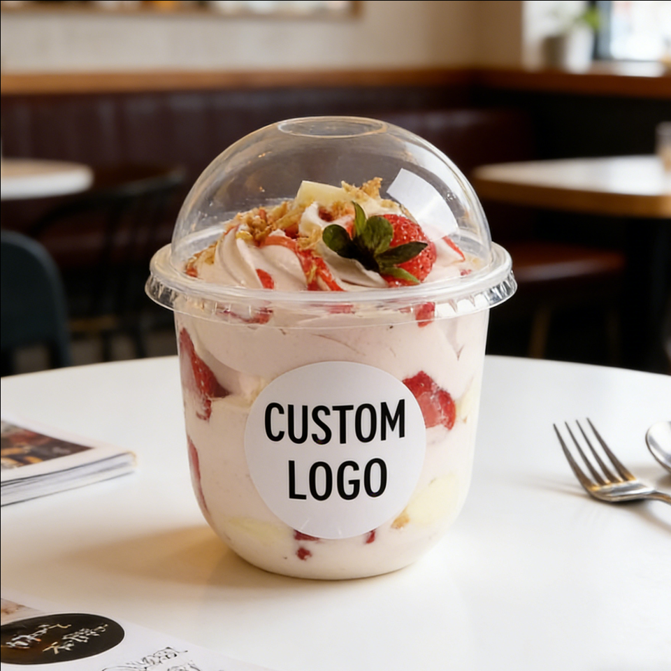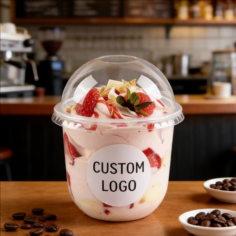 ถ้วยพลาสติกแบบใช้ครั้งเดียวขนาด 6 ออนซ์ 32 ออนซ์ ผนังชั้นเดียว 90 มม. พร้อมฝาแบบมีร่อง สำหรับใส่โยเกิร์ตและของหวาน