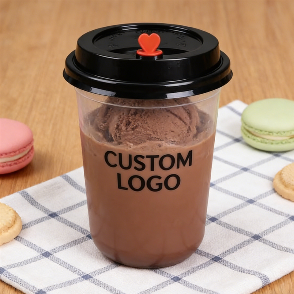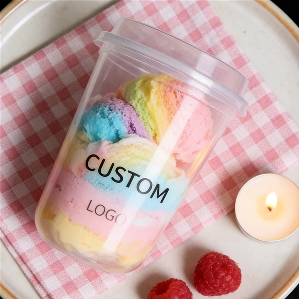 ถ้วยพลาสติกสำหรับของหวาน แบบผนังเดียว ขนาด 90 มม. 360 มล. 125 มล. 18 ออนซ์ ภาชนะแบบใช้แล้วทิ้งสำหรับไอศกรีมและของหวาน