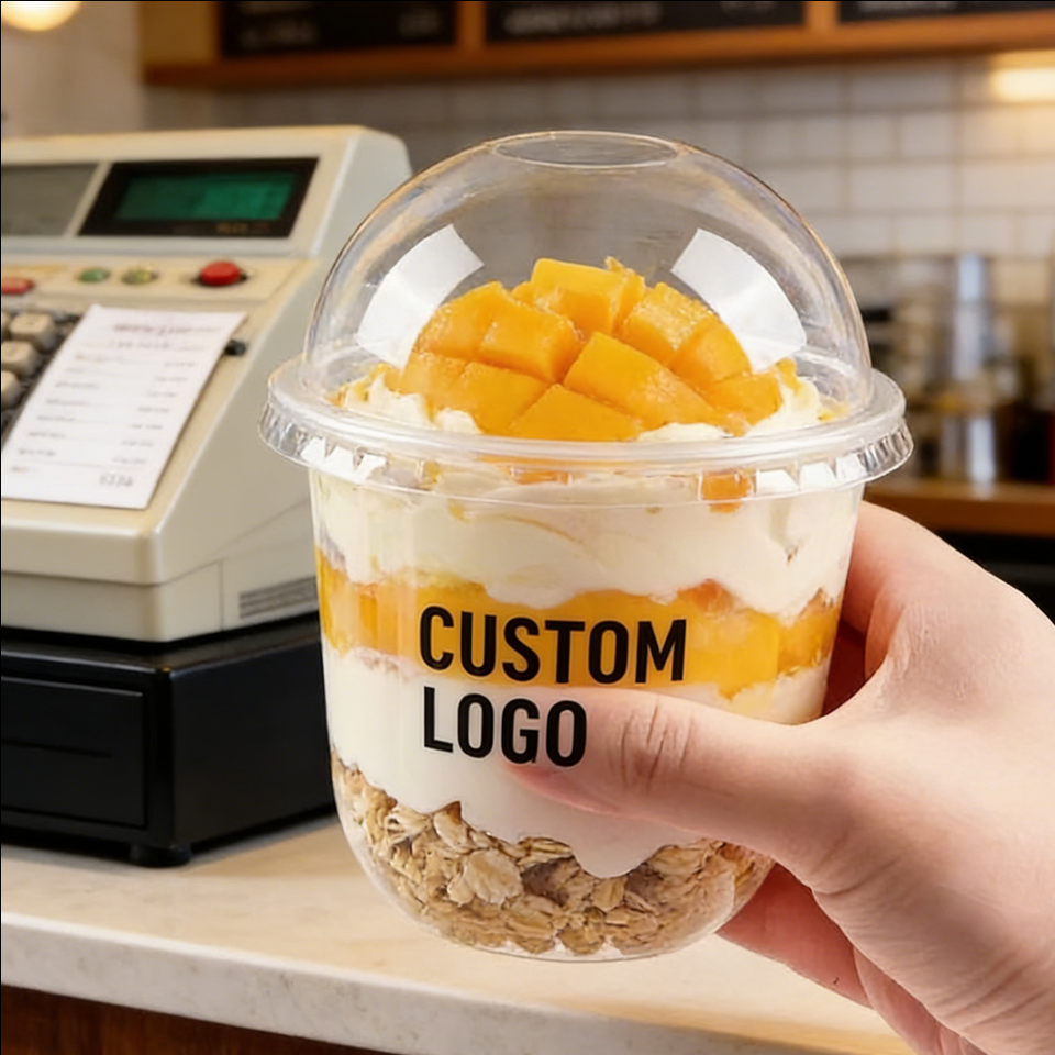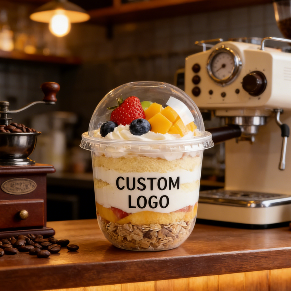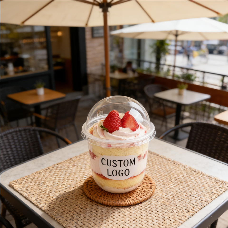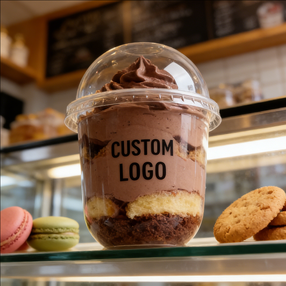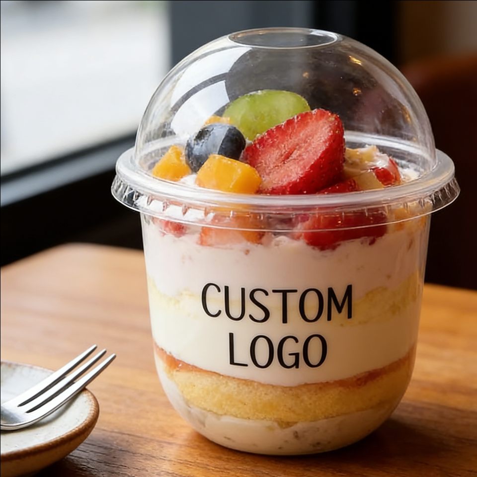 ถ้วยพลาสติก PP แบบใช้ครั้งเดียวสำหรับของหวาน พร้อมฝาปิด ขนาด 5 ออนซ์ 14 ออนซ์ เส้นผ่านศูนย์กลาง 90 มม. ปิดผนึกได้ ผลิตตามสั่งสำหรับของหวาน