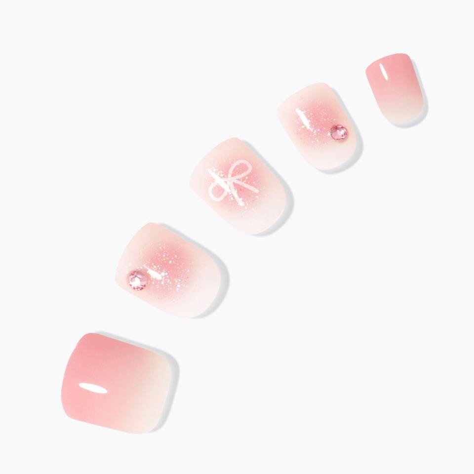 Dessing Diva Short Square Artificial Fingernails Cheek Ribbon Design