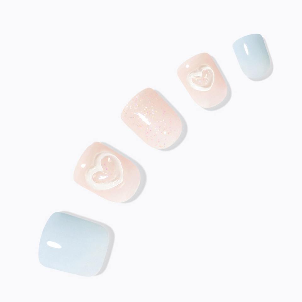 Dessing Diva Sky Heart Handmade French Press on Nails Set High Quality ABS Plastic Short Square Fake Nails
