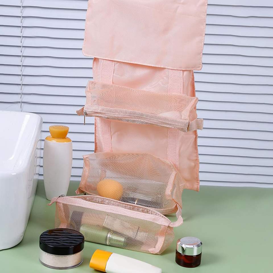 กระเป๋าจัดระเบียบเครื่องสำอางแบบถอดได้ 4-in-1 ผ้าแบบทันสมัย ซิปปิด ขนาดใหญ่ พกพาสะดวก พับเก็บได้ แฟชั่น