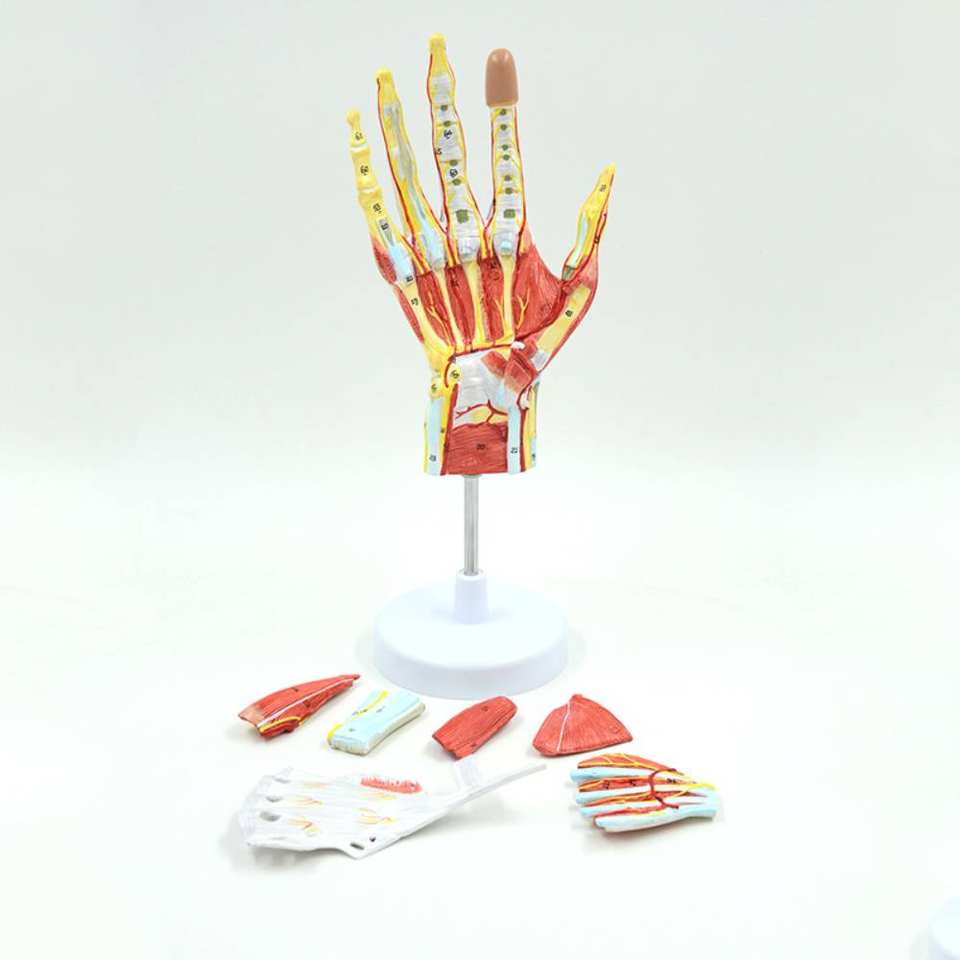 แบบจำลองกล้ามเนื้อมือที่ถอดออกได้พร้อมหลอดเลือดหลักและเส้นประสาท อุปกรณ์ช่วยสอนกล้ามเนื้อกระดูกมือ 7 ส่วน แบบจำลองกายวิภาคศาสตร์มือมนุษย์