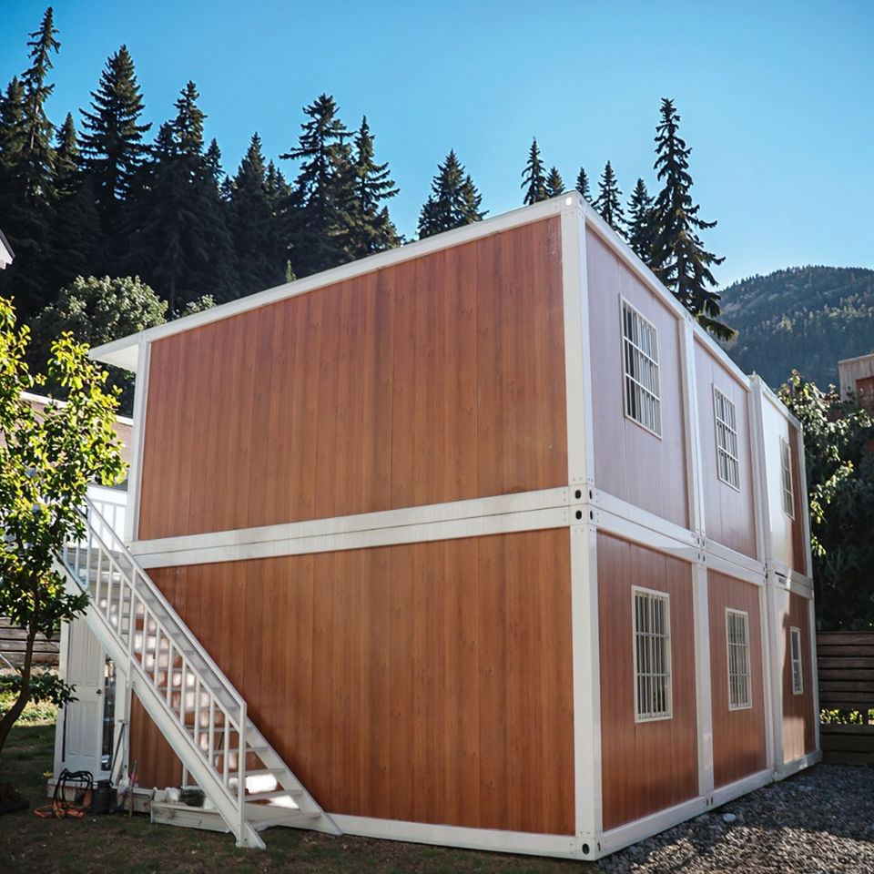 บ้านคอนเทนเนอร์สำเร็จรูปแบบถอดประกอบได้ ดีไซน์อุตสาหกรรม โครงสร้างเหล็กแข็งแรง 2 ชั้น สำหรับใช้เป็นอพาร์ทเมนท์สำเร็จรูป
