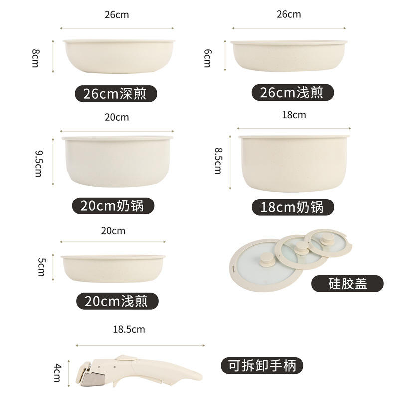 ชุดเครื่องครัวแบบถอดประกอบได้ 15 ชิ้น กระทะทรงกลมแบบซ้อนได้ สำหรับทำอาหารเช้า