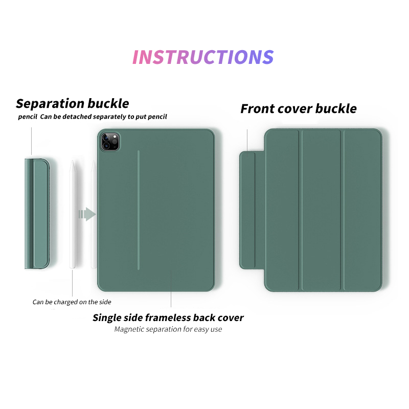 ที่ถอดออกได้ซับไมโครไฟเบอร์นุ่มบางเฉียบหลายหนัง PU Folio กรณีแม่เหล็กแบบชาร์จไฟได้ผู้ถือดินสอสําหรับ iPad Pro 12.9