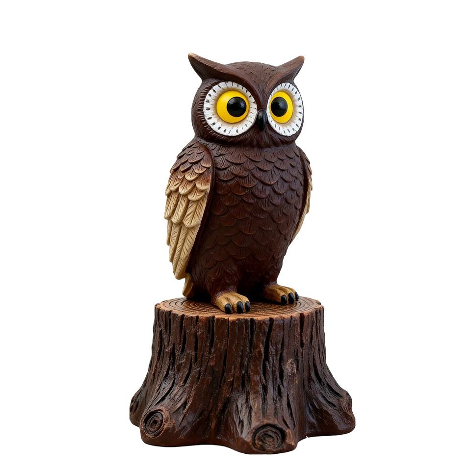 งานประติมากรรมรูปนกฮูกแบบละเอียด - งานฝีมือเรซิ่นสั่งทำพิเศษ ตาสีเหลืองสดใส เหมาะสำหรับตกแต่งห้องนั่งเล่น ระเบียง หรือสำนักงาน และเป็นของขวัญ