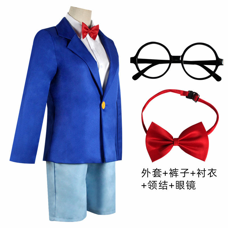 ชุดคอสเพลย์นักสืบโคนัน คุโดะ สำหรับเด็ก ชุดนักเรียนใหม่ ดีไซน์ตัวละครตลก ชุดตัวละครทีวีสำหรับงานฮาโลวีนประจำปี
