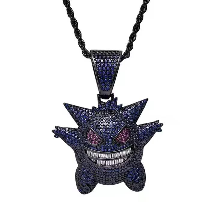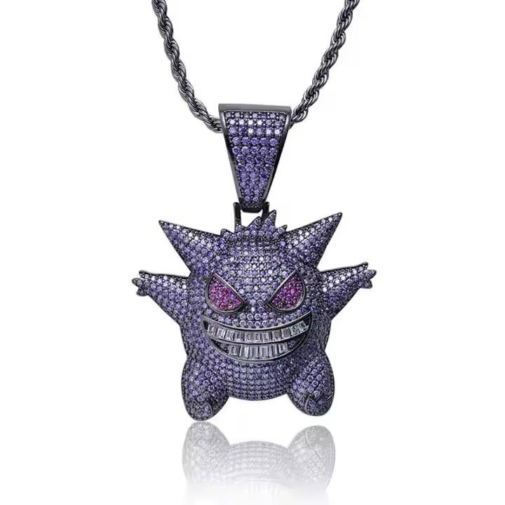 จี้เพชรโมอิสซาไนต์แบบกำหนดเอง Devil Face คุณภาพพรีเมียม ประดับเพชรเต็มตัว ชุบทอง สำหรับเด็กผู้ชาย
