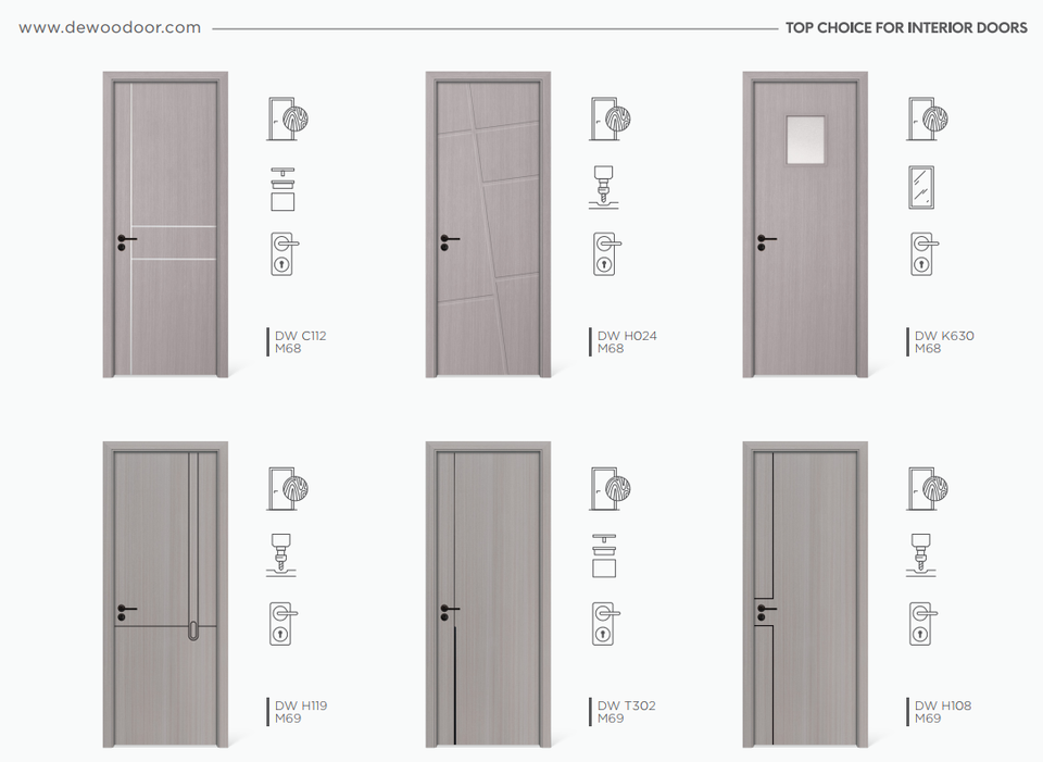 Dewoo ฟิล์มพีวีซีเคลือบประตูด้วยตนเองกันน้ำกันเสียงสำหรับโรงแรมอพาร์ตเมนต์ทำจากไม้สำเร็จรูปโรงงานในเวียดนาม