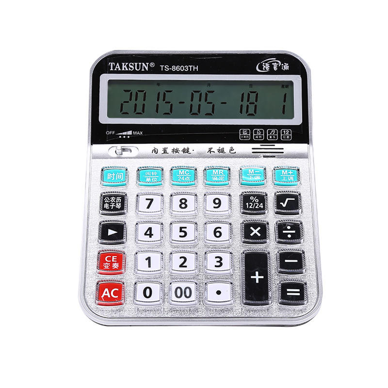 เครื่องคิดเลขเสียง Dexin รุ่น TS8603TH 12 หลัก ใช้พลังงานจากแบตเตอรี่ สำหรับตั้งโต๊ะ สำนักงาน อเนกประสงค์ สีเงิน