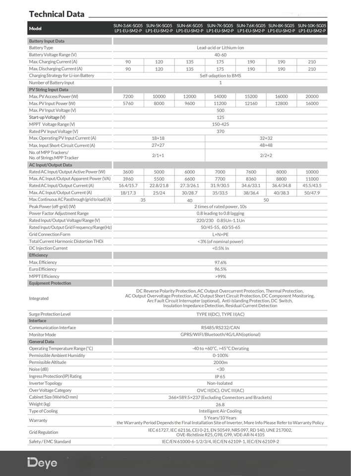 Deye 8KW อินเวอร์เตอร์ไฮบริด1เฟส SUN-8K-SG05LP1-EU-SM2รุ่นที่มีแรงดันไฟฟ้าต่ำมีระบบตรวจสอบ WiFi และป้องกัน IP65