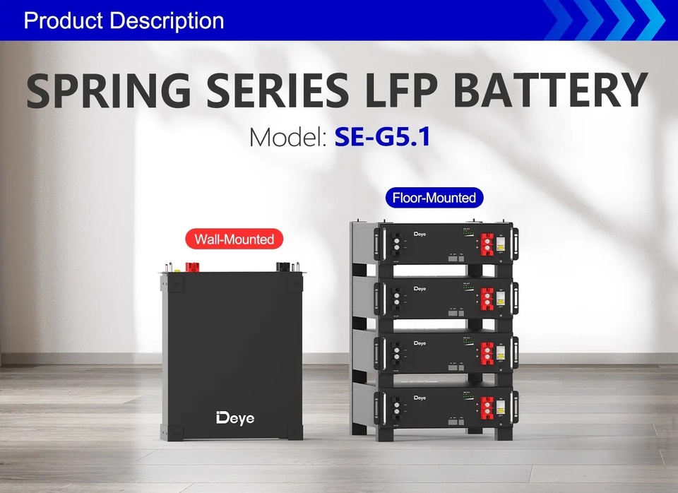 Deye SE-G5.1 100A 5.12kWH Lifepo451.2V แบตเตอรี่แรงดันต่ำ5-10kW 2025ชั้นวางแบตเตอรี่ชนิดติดตั้ง