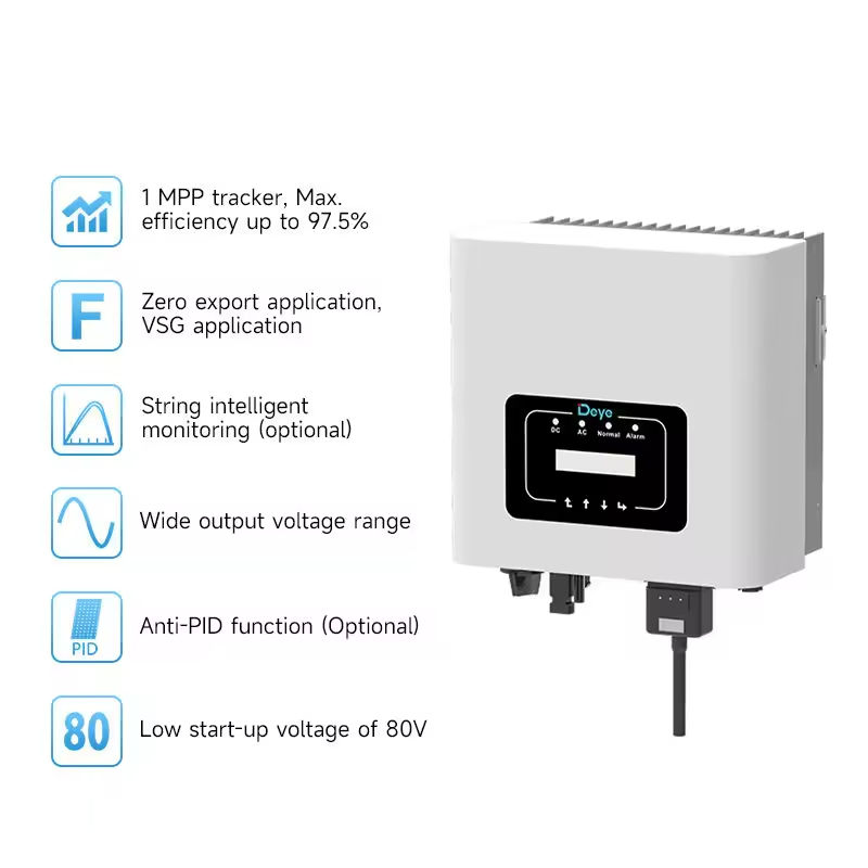 อินเวอร์เตอร์โซลาร์เซลล์แบบเชื่อมต่อกริด SUN-1/1.5/2/2.2/2.5/2.7/3/3.3/3.6/4K-G04P1-EU-AM1 ขนาด 1-4 กิโลวัตต์ เฟสเดียว ประสิทธิภาพ 97.5% มาตรฐาน IP65