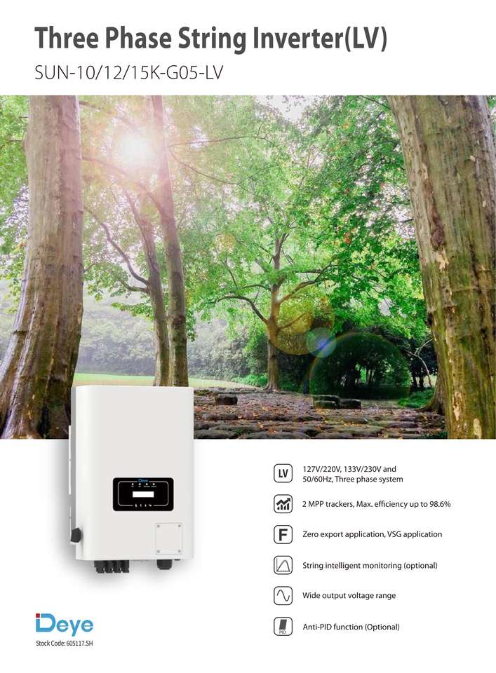 Deye Sun-10/12/15K-G05-LV อินเวอร์เตอร์แบบออนกริด10kW กับ15kW ช่วงพลังงานอินเทอร์เฟซที่ใช้งานง่ายสำหรับผู้ใช้