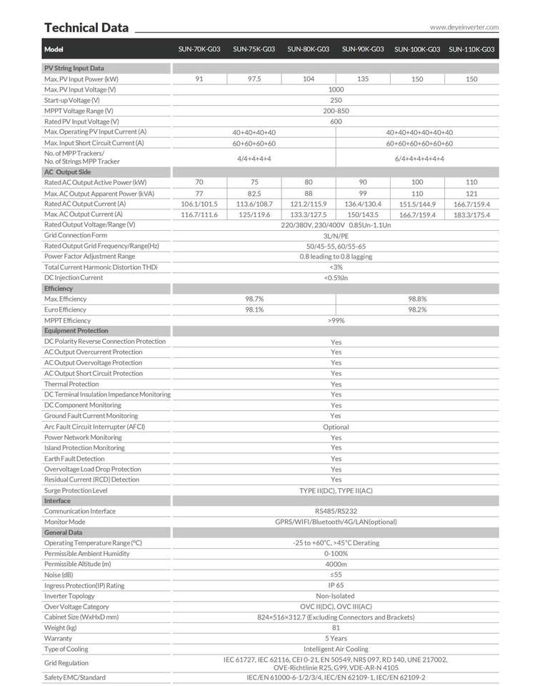 SUN-70/75/80/90/100/110K-G03หมายเลขรุ่น
