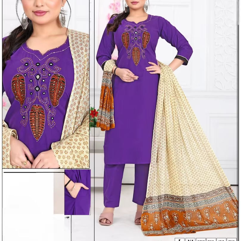 ชุดเซ็ต Salwar Kameez ไซส์ L 5XL ยี่ห้อ Dhwaja Export ผ้าฝ้ายพรีเมียม ชุดแต่งงานแบบดั้งเดิม ตกแต่งด้วยลายปัก Gamthi งานฝีมือคุณภาพสูง ผ้าคลุมไหล่คุณภาพเยี่ยม