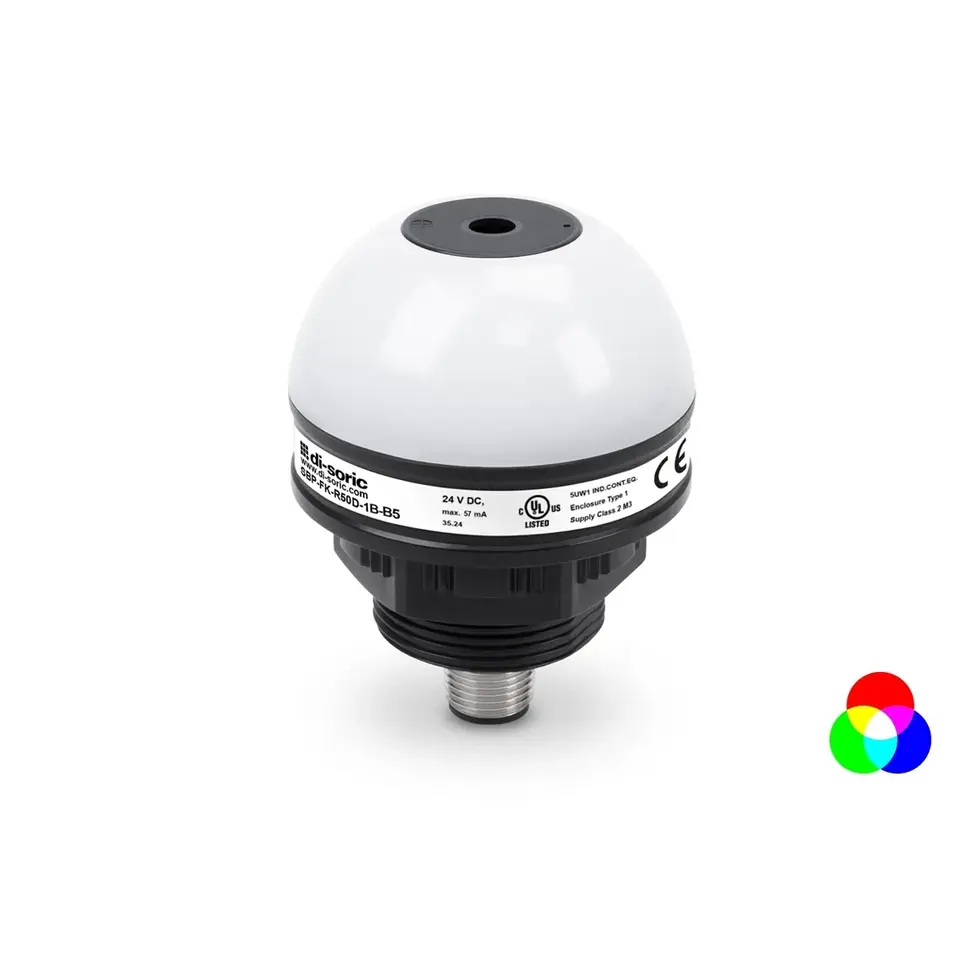 ไฟแสดงสถานะ LED รุ่น Di-Soric SBP-FK-R50D-1B-B5, 24 โวลต์ ดีซี, IP65, สีขาว, ขั้วต่อ M12, ตัวเรือนพลาสติก, สำหรับใช้กับแผงควบคุม