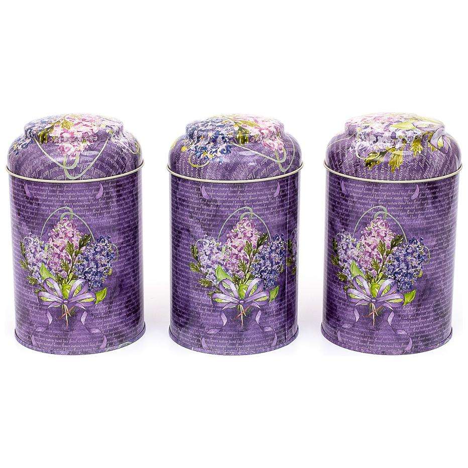 ชุดกล่องเก็บโลหะทรงกลมขนาด105X150มม. (ชุด3ชิ้น) ฝาดอกไม้สีม่วงดีไซน์สีม่วง