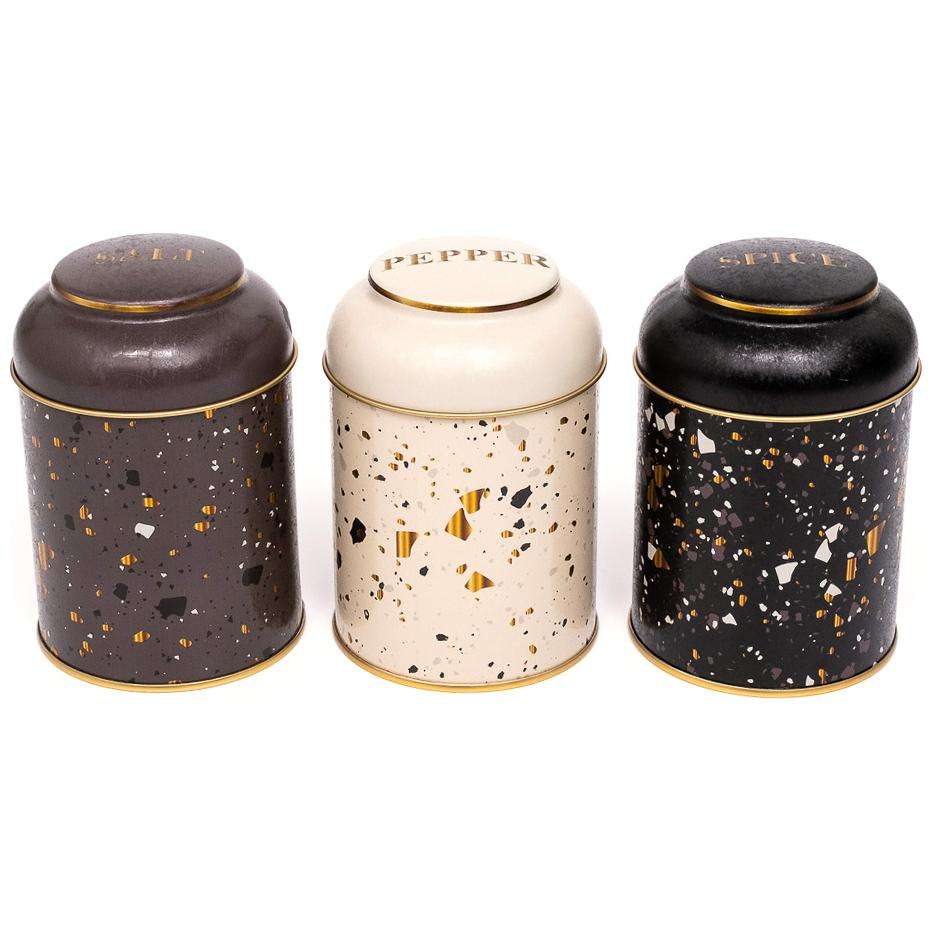 ชุดกระป๋องโลหะขนาด90x100มม. (ชุด3ชิ้น) พร้อมฝาโดมการออกแบบ Terrazo Terrazo