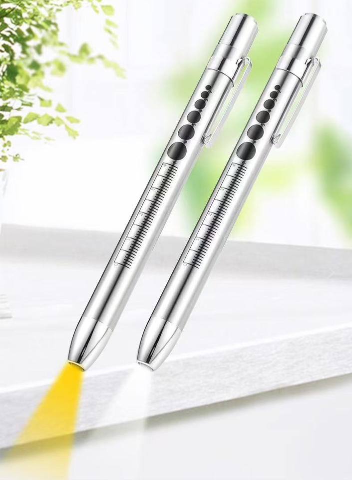 ปากกาตรวจวินิจฉัยทางการแพทย์ พร้อมเกจวัดรูม่านตาและคลิปหนีบ สำหรับแพทย์ พยาบาล นักศึกษา ไฟฉายแสงวอร์มไวท์/แสงขาว