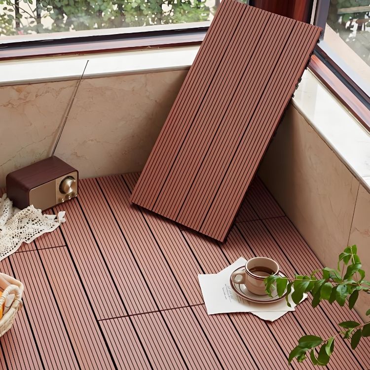 พื้นระเบียงไม้เทียมกันน้ำสำหรับกลางแจ้ง สีไม้แดงลายเฉียง สำหรับบ้านและสวน