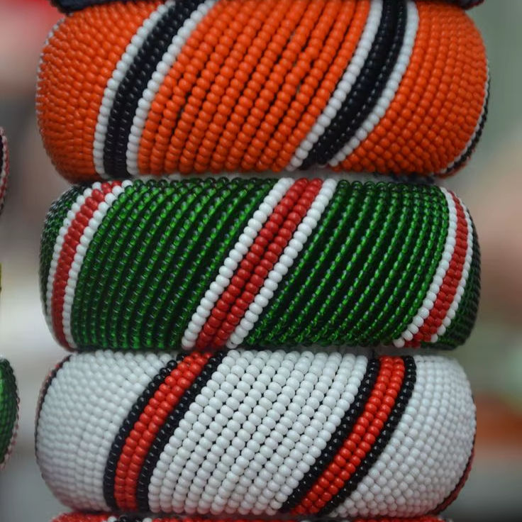 ชุดกำไลข้อมือลายเส้นเฉียงประดับลูกปัดแก้วแข็งแรงสำหรับผู้หญิง เครื่องประดับตกแต่งสไตล์แอฟริกัน