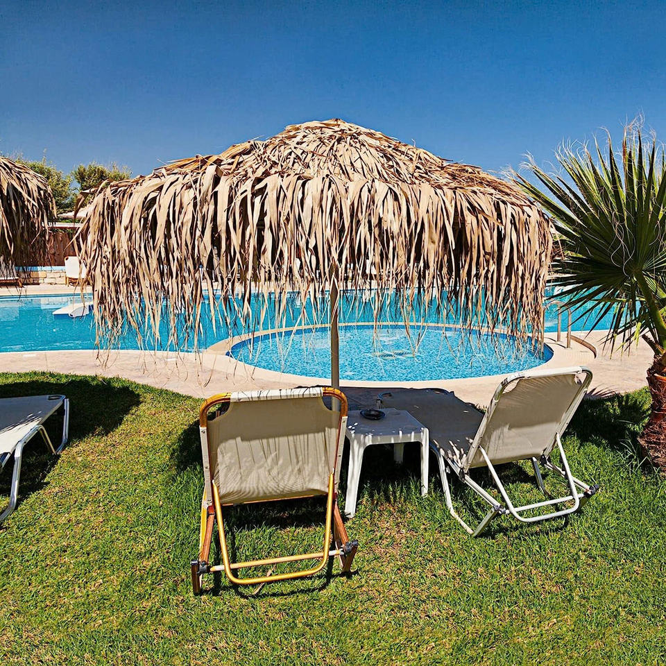 ร่มชายหาดทรงกระโจมขนาดเส้นผ่านศูนย์กลาง 210 ซม. พร้อมหลังคาผ้าใบ ดีไซน์ใบปาล์ม น้ำหนักเบา เป็นมิตรกับสิ่งแวดล้อม กันน้ำ ใช้กลางแจ้งในสวน ป้องกันแสงแดด