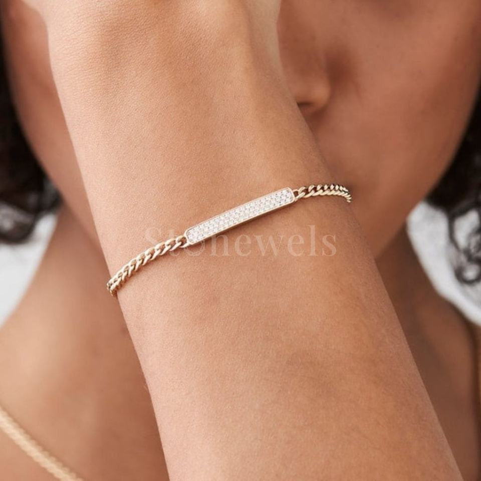 Gold Diamond Bar Cuban Chain Bracelet