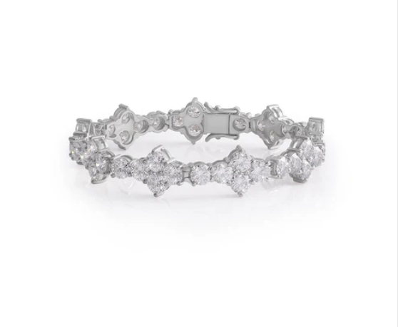 กำไลเพชร: กำไลเทนนิสเพชรเงินแท้ 925 ชุบทองคำขาว สไตล์วินเทจ