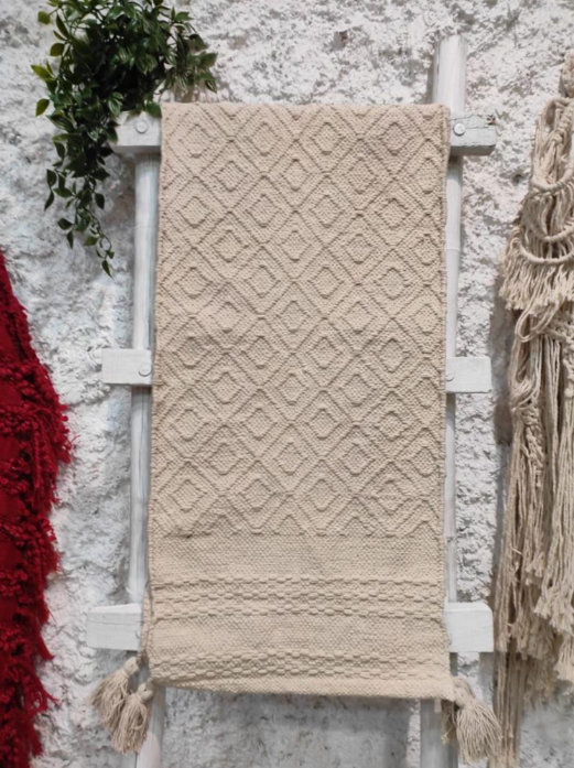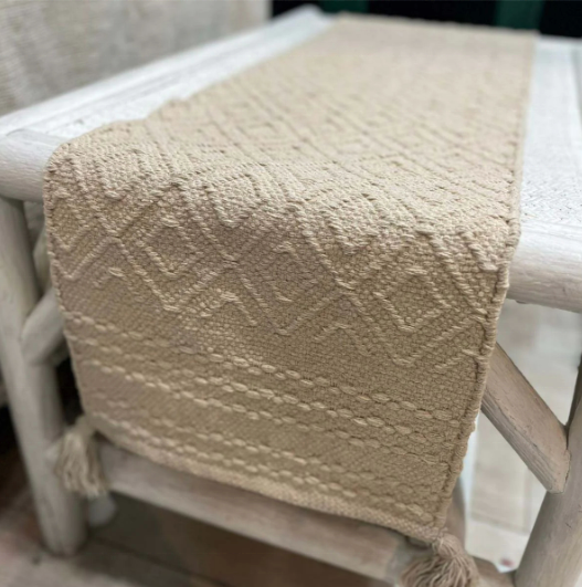 ผ้าปูโต๊ะผ้าฝ้ายถัก100% ประดับด้วยพู่ขนาด40x120ซม. สำหรับประดับโต๊ะอาหาร