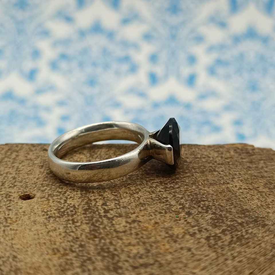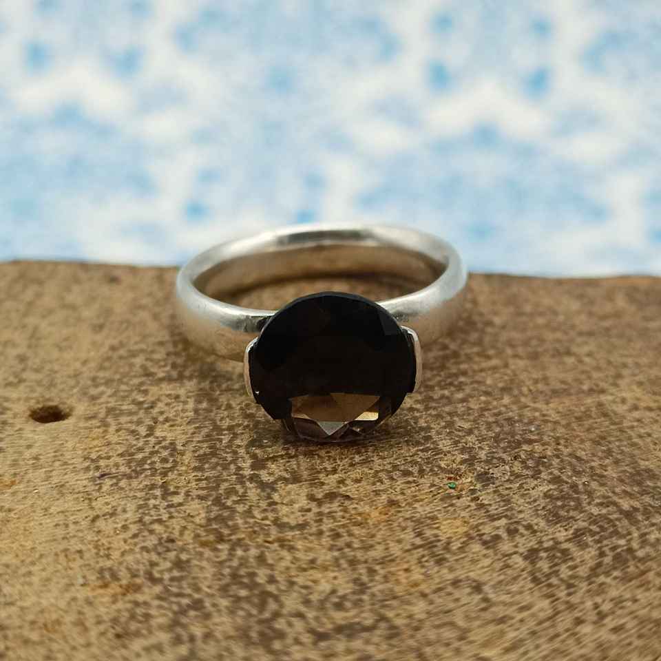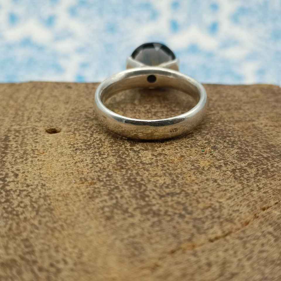 แหวนพลอยควอทซ์สีเงินแบบโบฮีเมียนทำจากหินธรรมชาติที่925เจียระไนด้วยเม็ดเพชรและการติดตั้งฝาสำหรับงานแต่งงาน